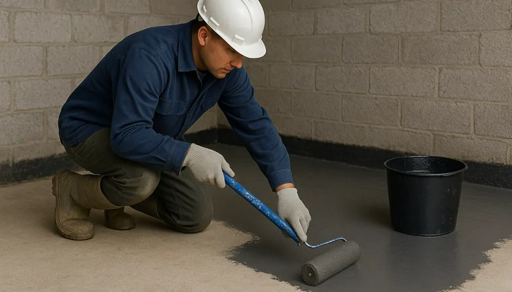 Обмазочная цементная гидроизоляция (жёсткая). Это двухкомпонентные составы на основе цемента и полимерных дисперсий. Они наносятся кистью или шпателем слоем в 2-3 мм. Ключевое условие – тщательная подготовка основания: оно должно быть прочным, очищенным, обеспыленным и обязательно увлажнённым до насыщения (но без луж). Состав наносится на влажную поверхность. Такая изоляция выдерживает давление воды, но не терпит деформаций. Её применяют для изоляции стен подвалов изнутри, ремонта бетонных ёмкостей, гидроизоляции санузлов. Перед нанесением швы и стыки необходимо расшить и заполнить ремонтным составом.