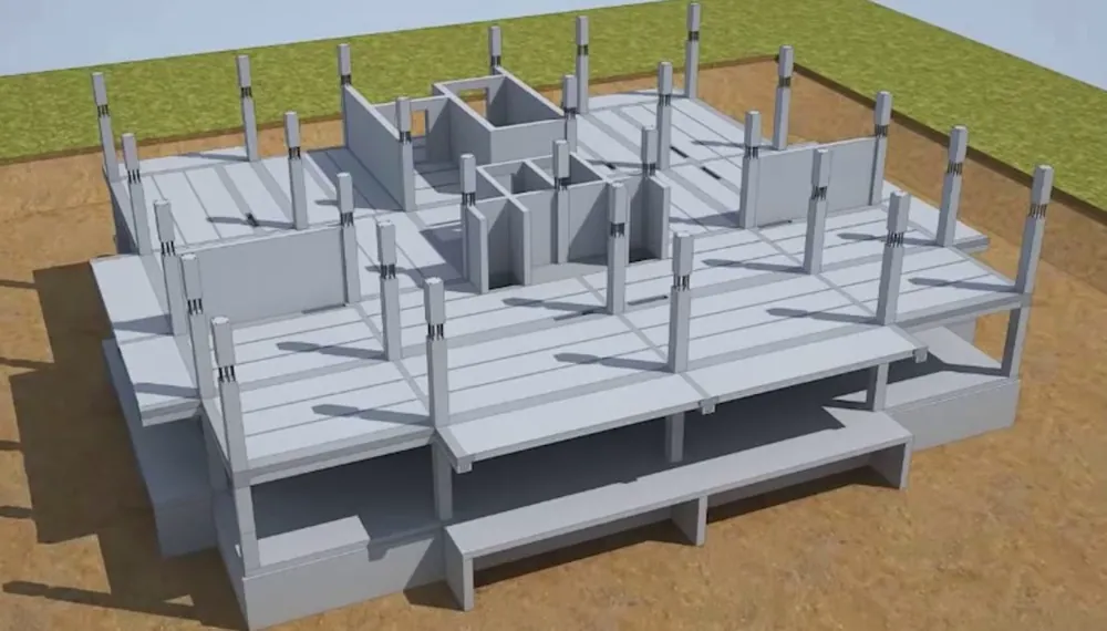 Сборно-монолитный каркас – это технология строительства, которая заключается в возведении стен из сборных элементов, соединённых между собой посредством монолитной заливки бетона.