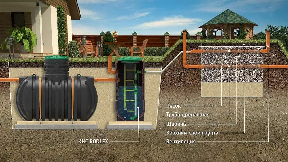 Сточные воды могут нарушить биологический баланс и загрязнить грунтовые воды. Их необходимо предварительно очистить в первичных отстойниках и только потом разложить в земле. Эти задачи выполняет очистительное сооружение бытовых сточных вод.