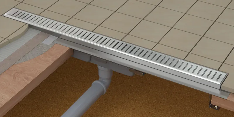 Линейные желоба, состоящие из душевого желоба и решётки, доступны в прямом и угловом исполнении. Душевой лоток встроен в поверхность пола и покрыт нескользящей решёткой. Отдельные компоненты каналов, неразъёмное соединены между собой, что гарантирует полную герметичность системы и исключает утечки.