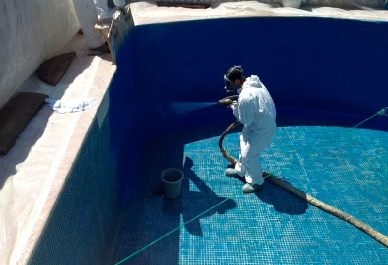 Напыляемая жидкая гидроизоляция основана на полимерной основе однокомпонентного или двухкомпонентного состава. Наносят такого типа изоляцию методом напыления с помощью краскопульта. При напылении на стенки резервуара жидкий состав раствора замаскирует все поры и мелкие трещины стенок ёмкости. Особенностью служит стойкость ко всем внешним факторам, стойкость к коррозийным проявлениям и антискользящая поверхность.