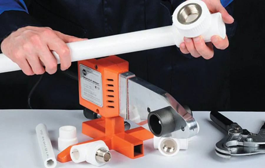 Главный инструмент – паяльник для пластиковых труб (его ещё называют сварочным аппаратом). Он бывает разной мощности: для домашних работ хватит модели на 800–1000 Вт.