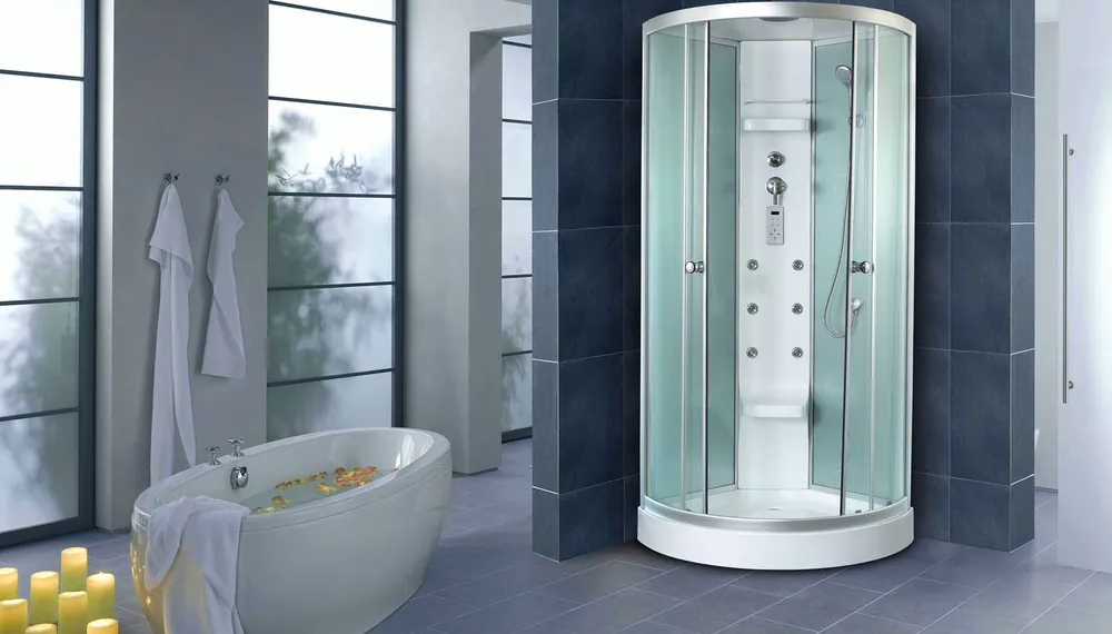 Комбинированный вариант. Это компромиссное решение, которое подойдёт для тех, кто хочет иметь у себя в квартире небольшой СПА-центр, но не очень дорогой. Обычно в таких кабинках присутствует душ, совмещённый с гидромассажем.